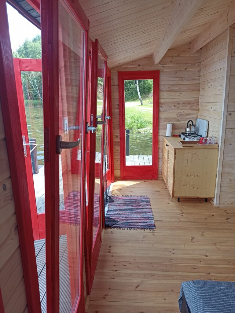 Namiņā – divvietīga gulta, gultas veļa, dvielīši, wc, neliels virtuves stūrītis ar gāzes plītiņu, gāzes sildītājs, salokāmie krēsli, 12V elektrība (USB). Uz namiņa terases – divi atpūtas krēsli, galdiņš, mazais grils