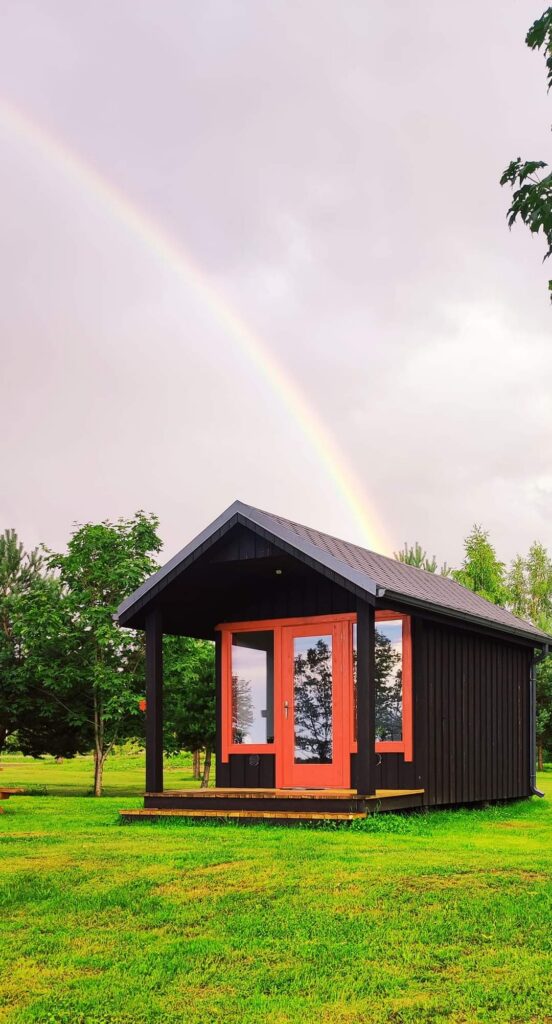 Namiņš novietots kalnā ar skatu uz Baļotes ezeru. Namiņā ir divvietīga un divstāvu gulta ar gultas veļu un dvielīšiem, ir elektrība 220V, ventilators, sildītājs, leduskapītis, elektriskā tējkanna. Pie namiņa ir galds ar soliem un grils. Turpat blakus namiņā ir dušas un tualetes ar silto un karsto ūdeni. Namiņš atrodas 200m no ezera krasta ar ļoti skaistu skatu uz Baļotes ezeru. Ir iespēja rezervēt makšķerēšanas/atpūtas vietu pie ezera. Turpat pie namiņa ir bērnu laukumiņš, atpūtas vieta ar ugunskura vietu. Papildus piedāvājam pirts, kubla, supu un laivu nomu, lielās lapenes rezervāciju. Ierašanās namiņā sākot no plkst.14.00 vai Jums ērtā laikā, izbraukšana plkst.12.00